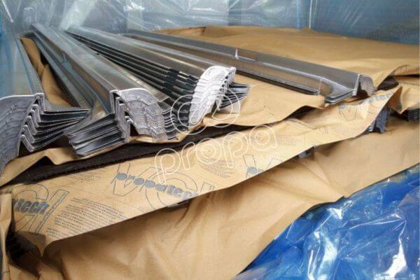 PROPATECH VCI Korrosionsschutzpapiere sind vielseitig einsetzbar und eignen sich besonders für die Anwendung in Schichten zwischen Produkten, beispielsweise als Ersatz-VCI-Tank in Kombination mit anderen PROPATECH VCI-Produkten oder zur Auskleidung von Kisten.